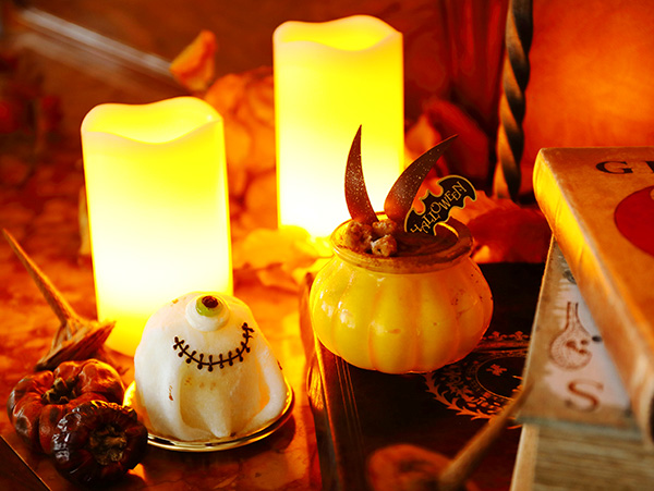 さっぱりとしたレアチーズクリームを包んだ可愛らしいゴーストのケーキやカボチャの軽いクリームとアイリッシュウイスキーがほのかに香る大人のかぼちゃのティラミスなどおうちハロウィンを彩るデザートです。
