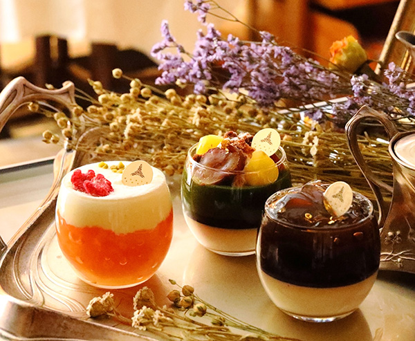 定番のマンゴープリンやコーヒーゼリー、抹茶ゼリーと栗のパンナコッタを合わせたゼリー、甘酸っぱいピンクグレープフルーツの果肉がたっぷりのゼリー、そして色鮮やかな旬のフルーツをふんだんに使用したタルトなど幅広く取り揃えております。詳しくは、ホームページよりご確認いただけます。