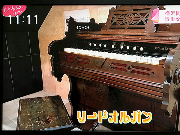 国内で確認された貴重なオルガンとして注目いただいております弊社社長が見つけた「開港期のオルガン」が、NHK総合「ひるまえほっと」にて、開港期の横浜の古写真と共に紹介していただきました。短い時間ではございましたが西優樹先生による演奏も放送され開港期の音色をお届けする事もできました。