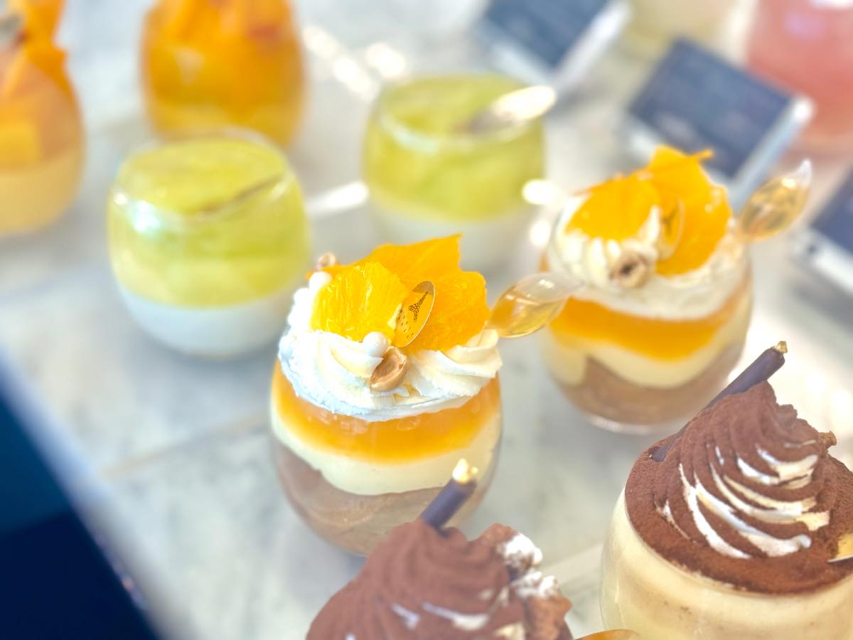 オレンジの爽やかな酸味とラム酒が絶妙に調和した、大人の味わいの「サバラン・オランジュ」。そして、ピンク色が目にも鮮やかな、果肉たっぷりの「ルビーグレープフルーツのジュレ」など、見た目にも涼しげなスイーツをご用意しました。