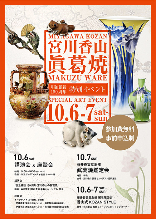 明治維新150周年の記念企画として、眞葛焼についてわかり易く解説する講演会とパネルディスカッション、老舗古美術商主催の眞葛焼鑑定会と展示販売会を、平成30年10月6日(土)、7日(日)にポートサイド地区で行います。