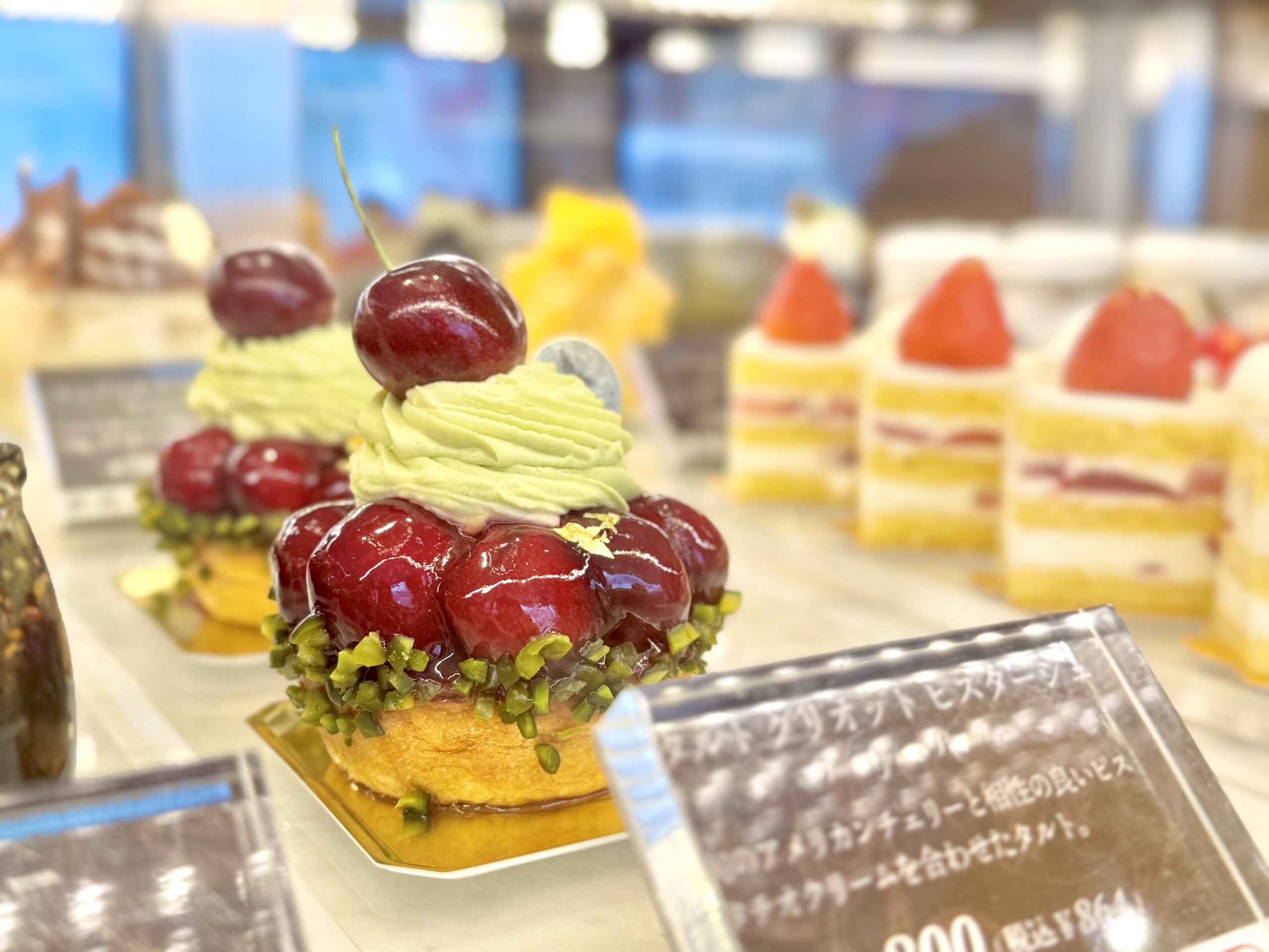 大粒で食べごたえがある甘酸っぱいアメリカンチェリーと相性の良い香ばしい風味のピスタチオクリームを合わせた「タルト グリオット ピスターシュ」¥864(税込)の販売がスタートします!