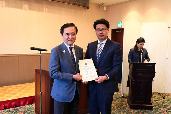 上:神奈川銘菓指定証交付(黒岩神奈川県知事と弊社社長)