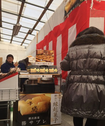 成田山新勝寺の横浜別院である横浜成田山にて、弊社の横浜 縁起菓子「勝サブレ」をお取り扱いいただいております。