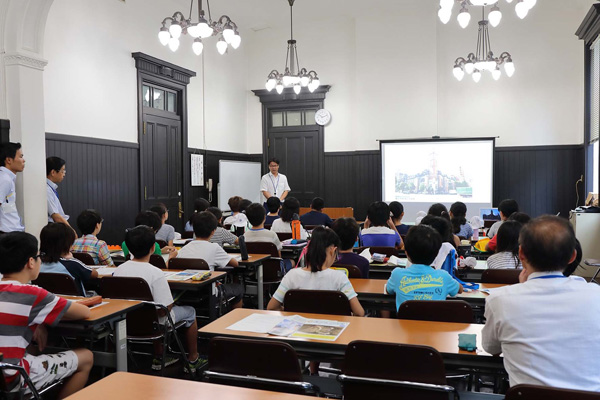 本町小学校の出身で、横濱三塔協議会の会長を務めさせていただいている弊社 社長は、イベントの中で中区地域振興課の方のご支援のもと、横浜市開港記念会館と横浜三塔の講演をさせていただきました。その後は、ジャックサポーターさんたちの案内で館内を見学し、横浜市開港記念会館のご協力で特別に塔を登らせていただいた子供たちは、熱心に積極的に参加し、イベントを楽しんでいる様子でした。