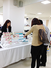 サンケイシティリビングとTokyoWeddingが主催の横浜ワールドポーターズにて行われたウエディングイベントに参加させていただき、11月12日(木)にリリースした「しあわせの三塔ギモーヴ」と「しあわせの三塔ポルボロン」を販売させていただきました。“恋が叶う”をコンセプトに、”願いが叶う”という横浜三塔の伝説を織り交ぜてつくられたプチギフト「しあわせの三塔ギモーヴ」と「しあわせの三塔ポルボロン」は、しあわせのお裾分けとしてのウエディングギフトにも最適で来場者の方にもご好評いただきました。