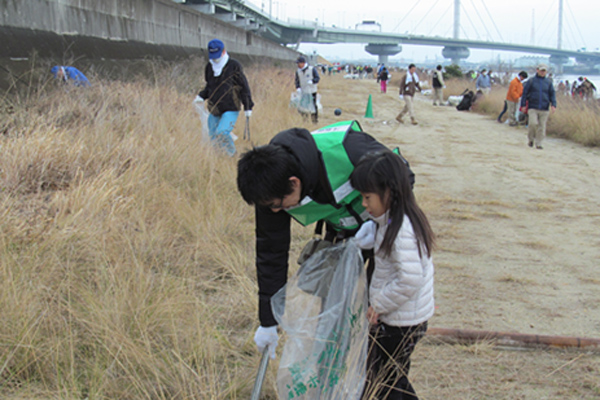 弊社大阪支店は大阪福祉防犯協会の一員として3月2日(日)に大阪と堺市の境界を流れる一級河川、大和川の下流付近で開催された「大和川クリーンアップ大作戦」に参加しました。