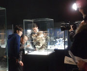 上:「宮川香山 眞葛ミュージアム」を紹介するリポーター
