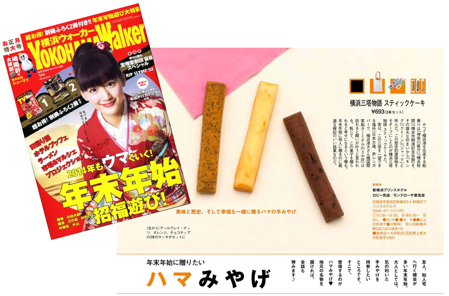 「横浜ウォーカー お正月特大号」の“年末年始に贈りたいハマみやげ”特集で、弊社の「横浜三塔物語 スティックケーキ」が紹介されました。